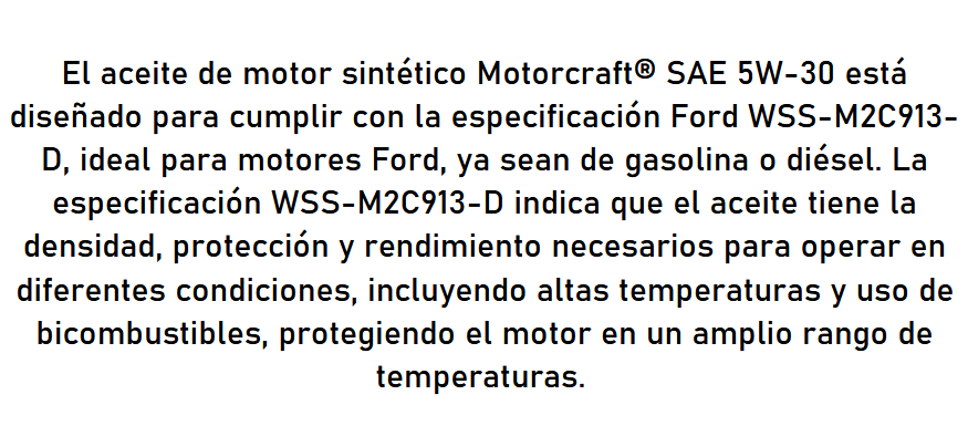 ACEITE 5W30 4 LT MOTORCRAFT Dual FULL SYNTHETIC WSS-M2C913-D / API: SN / ACEA A5/B5 - BRASILEÑO MOTORCRAFT 43166.0 IVA Incluido $ 35854 Precio Neto Stock por sucursal Stock por sucursal cantidad Agregar al carro Avísame cuando llegue
