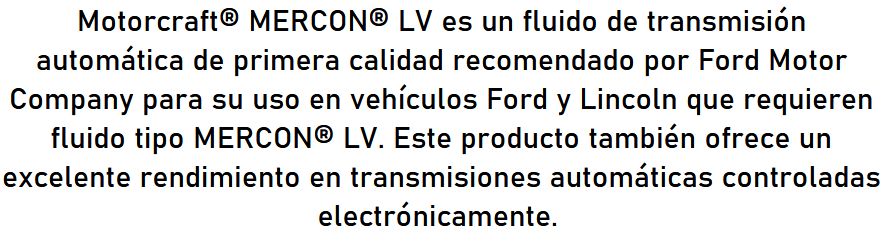 ACEITE MERCON LV MOTORCRAFT 1 LT Trans. Automática SEMISINTETICO MOTORCRAFT 10467.0 IVA Incluido $ 8376 Precio Neto Stock por sucursal Stock por sucursal cantidad Agregar al carro Avísame cuando llegue