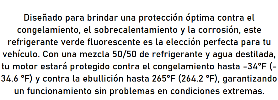 ANTICONGELANTE VERDE 5 LT. 50-50 MOTORCRAFT MOTORCRAFT 33496.0 IVA Incluido $ 27728 Precio Neto Stock por sucursal Stock por sucursal cantidad Agregar al carro Avísame cuando llegue