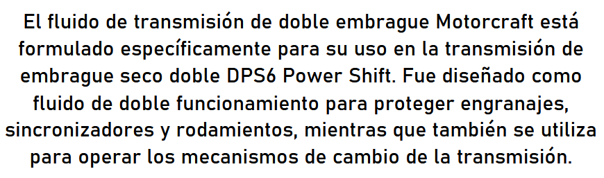 Fluido caja de cambio 1 LT Doble Embrague Embrague seco doble DPS6 Power Shift motorcraft MOTORCRAFT 51238.0 IVA Incluido $ 42637 Precio Neto Stock por sucursal Stock por sucursal cantidad Agregar al carro Avísame cuando llegue